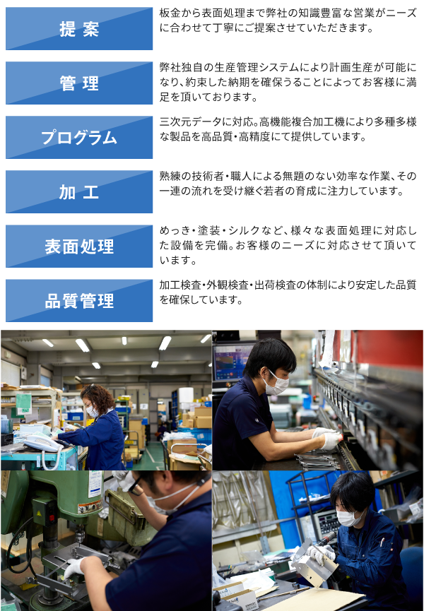 加工検査・外観検査・出荷検査の体制により、安定した品質を確保しています。